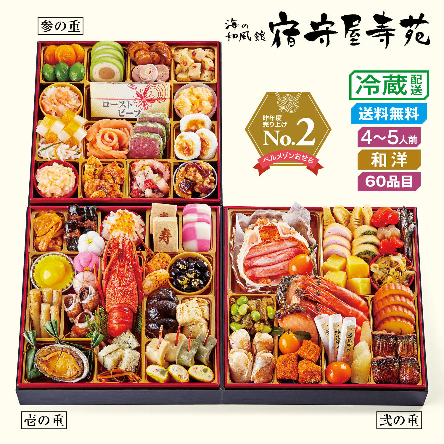 第2位:石川〈和倉温泉 宿守屋寿苑〉和洋おせち 三段重